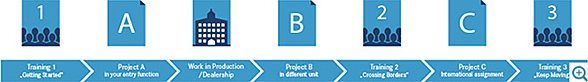 You have a chance not only to learn about the company, its products and services, but also to become connected with professionals all over the world. To achieve that, you spend 15 to 18 months working in different teams and divisions of Daimler - worldwide. It's up to you to design the contents of your assignments, after which you return to FUSO, rich with new perspectives and with a wider network.